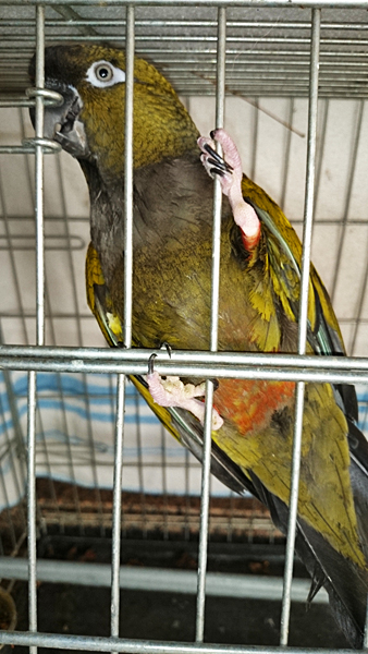 Actualmente se encuentra en fase de cuarentena y pronto pasará a los aviarios de mantenimiento de la Fundación Neotrópico.